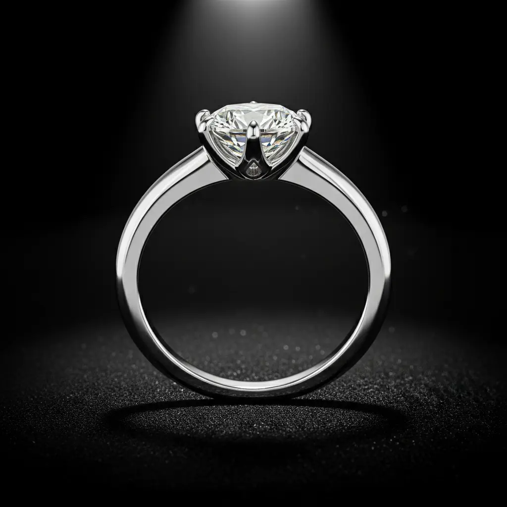 Brilliant round-cut diamond in a platinum solitaire setting with timeless elegance.